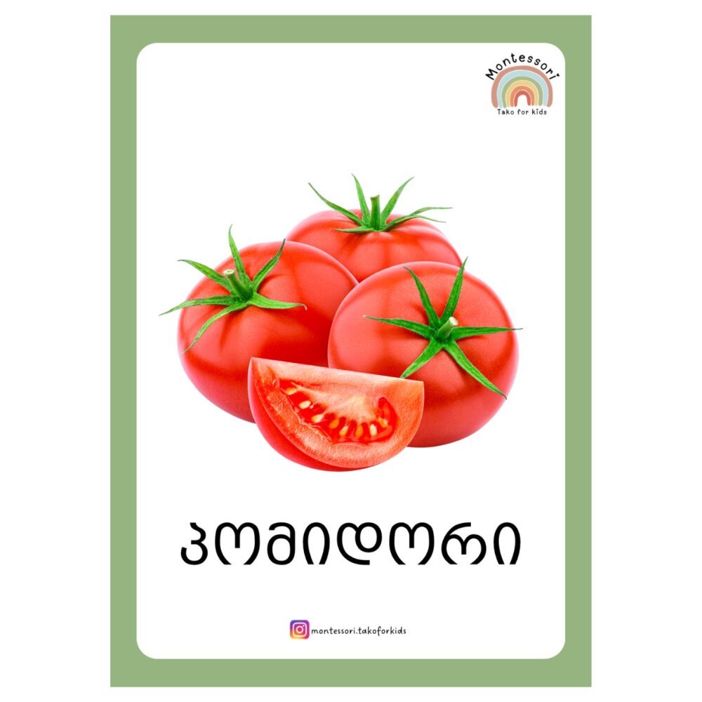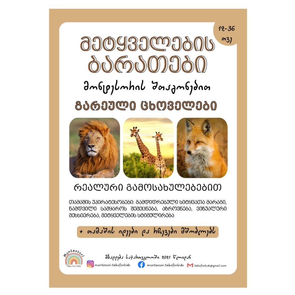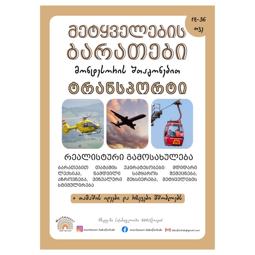 მარია მონტესორის პედაგოგიკის მიხედვით შედგენილი ეს რეალისტური ბარათები, ბავშვს ადრეული ასაკიდანვე ეხმარება ისწავლოს სხვადასხვა თემასთან დაკავშირებული სიტყვები, ფორმები და გამოსახულებები. ერთ ბარათზე გამოსახულია მხოლოდ ერთი – რეალური გამოსახულება, რაც იპყრობს ბავშვის ყურადღებას, მის ტვინს კი უადვილდება ასეთი სახით ინფორმაციის მიღება და დამახსოვრება. როდესაც ბავშვს აღუწერთ თითო ბარათს და ესაუბრებით ამ თემის ირგვლივ ( ხილი, ცხოველები, ემოციები, პროფესიები და ა.შ.) – აქტიურდება სმენა, ვითარდება ყურადღება, ხდება მეტყველების სტიმულაცია, სიტყვების მარაგის დარგოვება. მშობელს შეუძლია ამ ბარათებით სხვადასხვა განმავითარებელი აქტივობა გააკეთოს ბავშვთან ერთად – რაც დეტალურად აღწერილია ნაკრების თანდართულ ინსტრუქციაში.