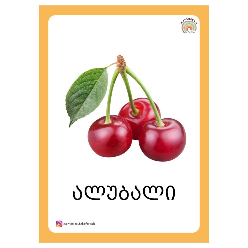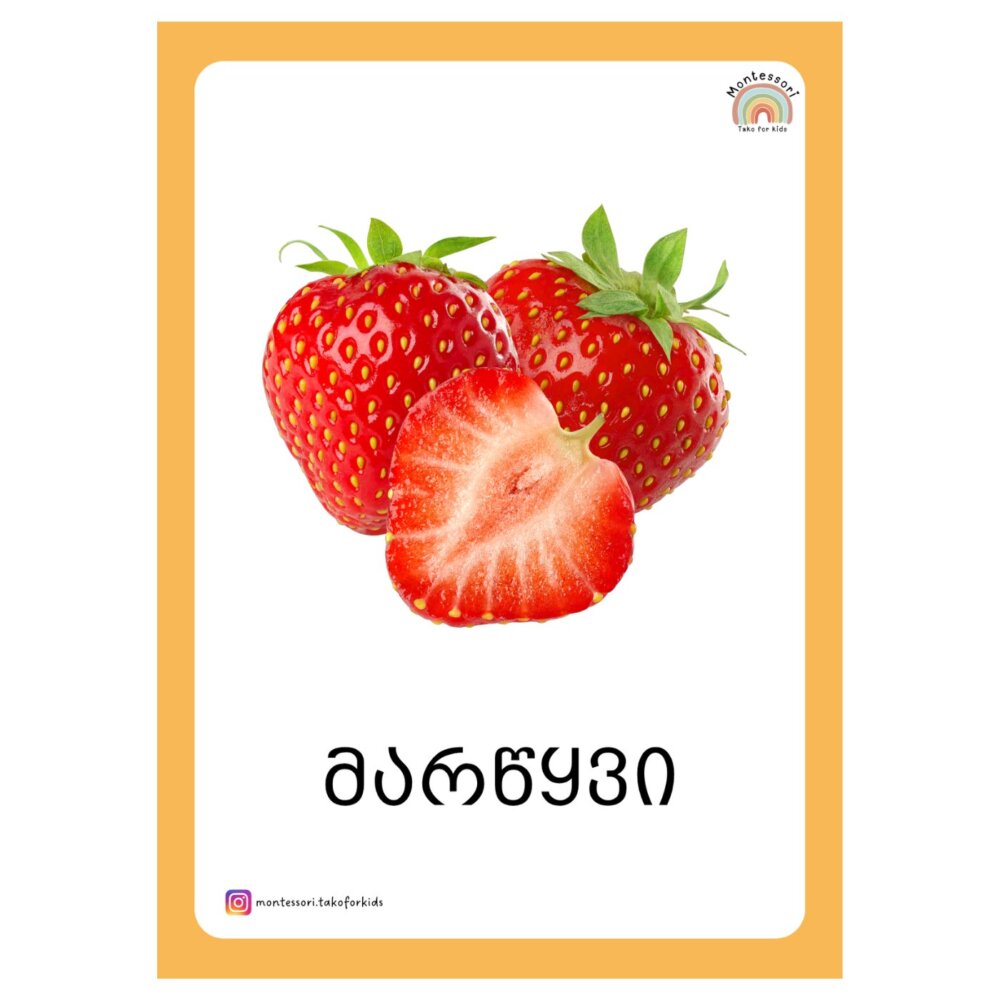 Montessori განმავითარებელი ბარათები “ხილი” 12-36 თვე