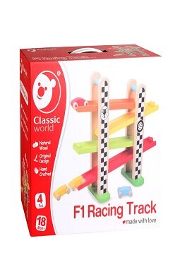 ფორმულა 1-ის ხის სარბოლო ტრასასთან თამაში ასტიმულირებს ხელისა და თვალის კოორდინაციას და მიზეზ-შედეგობრივი ურთიერთობების გააზრებას. რეკომენდებული ასაკი: 18 თვიდან