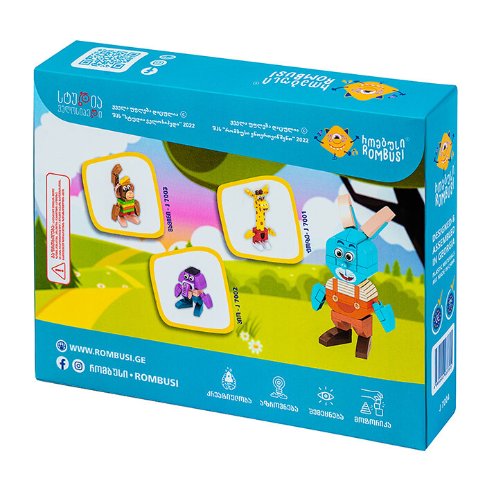 რომბუსის ჟირაფი ჟოზესა და მისი მეგობრების სათამაშო კონსტრუქტორები ლიცენზირებულია სტუდია ველოსიპედის მიერ და წარმოადგენს სრულად უსაფრთხოსა და უვნებელს.