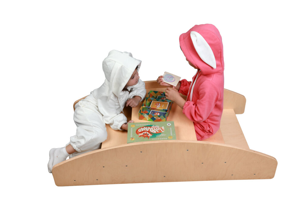 და ნაყოფიერი თამაშის სწავლისა. მისი ამოტრიალების შემდეგ ის გადაიქცევა საფეხურებიან, საცოც პლატფორმად, რაც ასევე ხელს უწყობს წონასწორობის, კონცენტრაციისა და მსხვილი მოტორული უნარების განვითარებას. აღნიშნული ორი ერთში პროდუქტი შექმნილია ბავშვისთვის ისეთი უნარების განვითარებისთვის, რაც მას მთელი