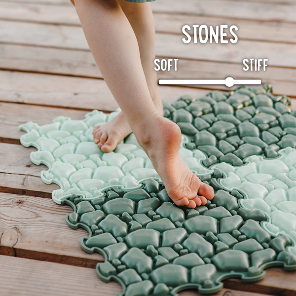 დიდი და პატარა, გლუვი და კუთხოვანი ქვებით შექმნილი ხალიჩა-ფაზლი საშხაპეშიც გამოიყენება, რათა დაიმასაჟოთ ფეხები.ხისტი ზედაპირი ხალიჩა შემკულია 99 სხვადასხვა ზომის ქვით, რომელიც ხელს უწყობს სენსორული და მოტორული უნარების განვითარებას. სანამ ფეხის ქუსლების, ტერფებისა და გვერდების ვარჯიშით იქნებით გართულნი, ვერც კი გაიგებთ, როგორ აღმოჩნდით კლდოვანი სანაპიროს სამფლობელოში.